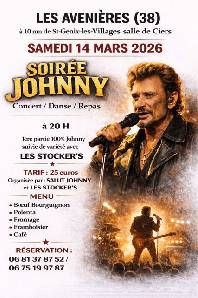 L'association "SALUT JOHNNY" et "LES STOCKER'S" nous propose un repas dansant 100% JOHNNY jusqu'à minuit puis de la variété Française jusqu'à la fermeture (vers 1h30)